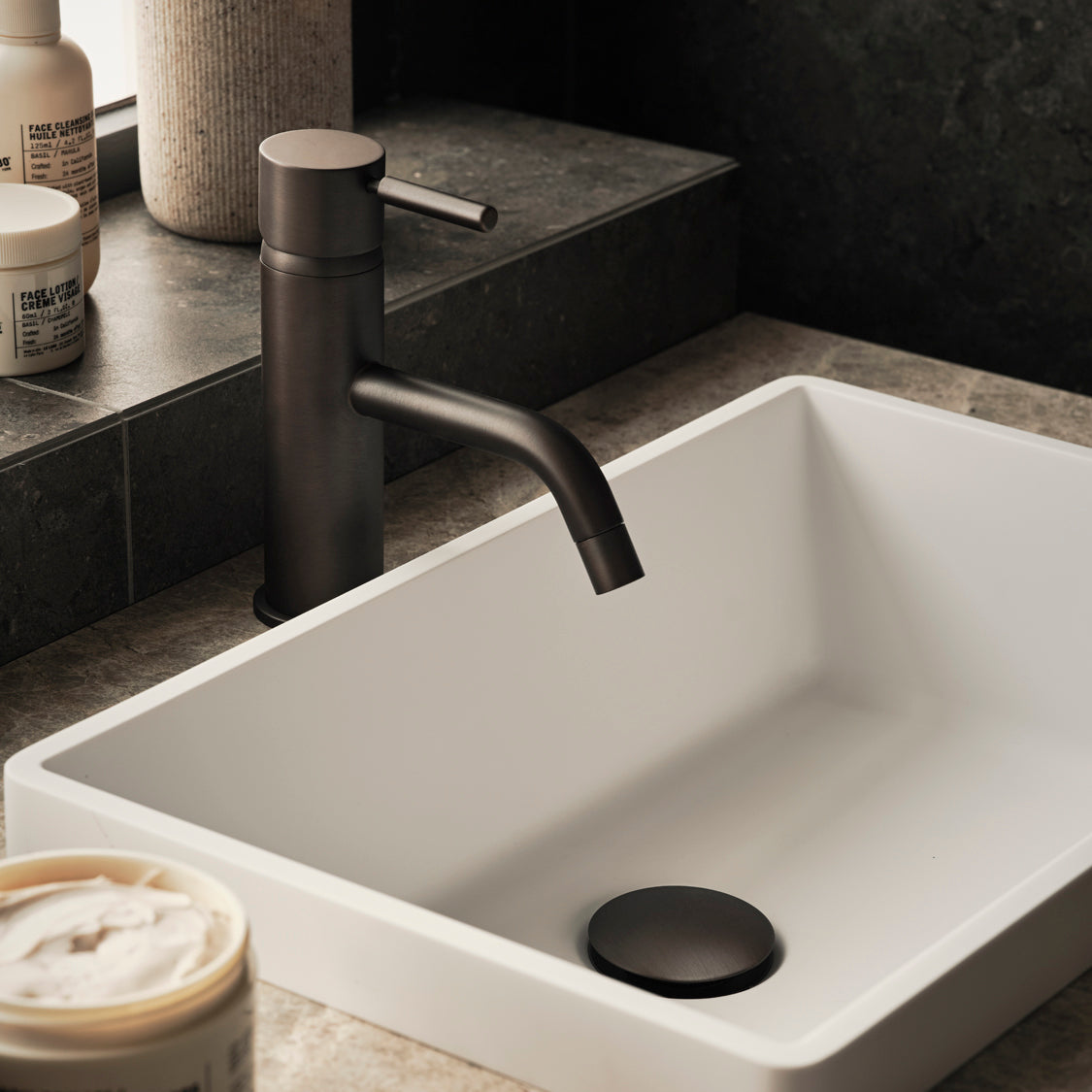 Nú geturðu verið með þrýstihnappinn í stíl við blöndunartækin og aðra fylgihluti.