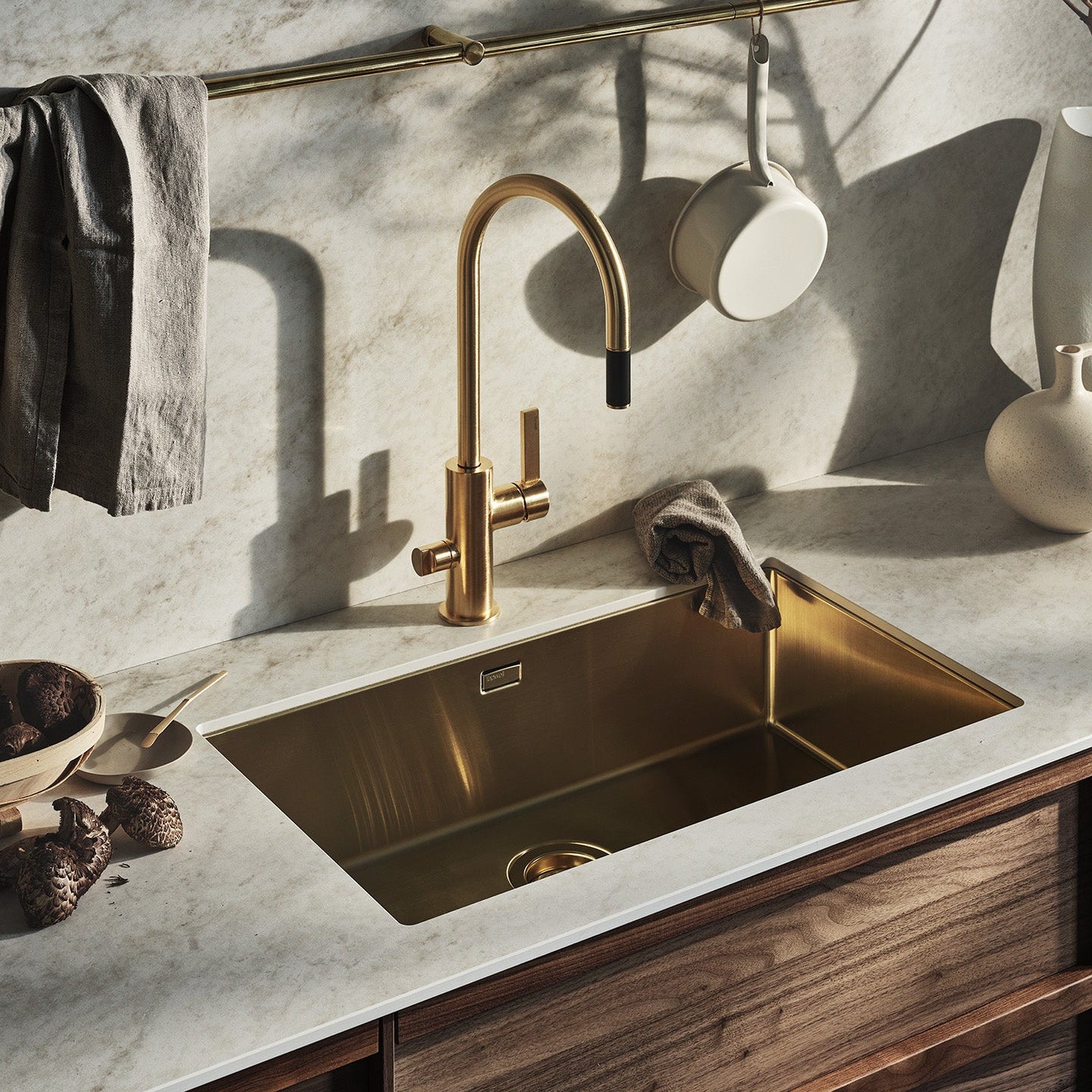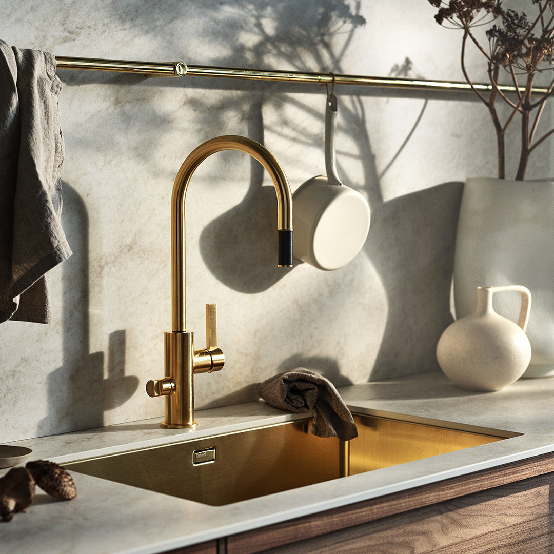 Brushed Honey Gold liturinn frá Tapwell er glæsilegur, burstaður gylltur litur.