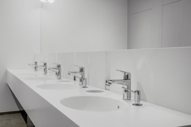 Það er alltaf gaman þegar hönnun og notagildi fara saman. Það má eiginlega seigja að slíkt sé svo til undantekningarlaust þegar Corian® er notað á almenningssalerni. Samskeytalausir vaskar auðvelda öll þrif og koma í veg fyrir að skítur safnist fyrir á erfiðum stöðum.