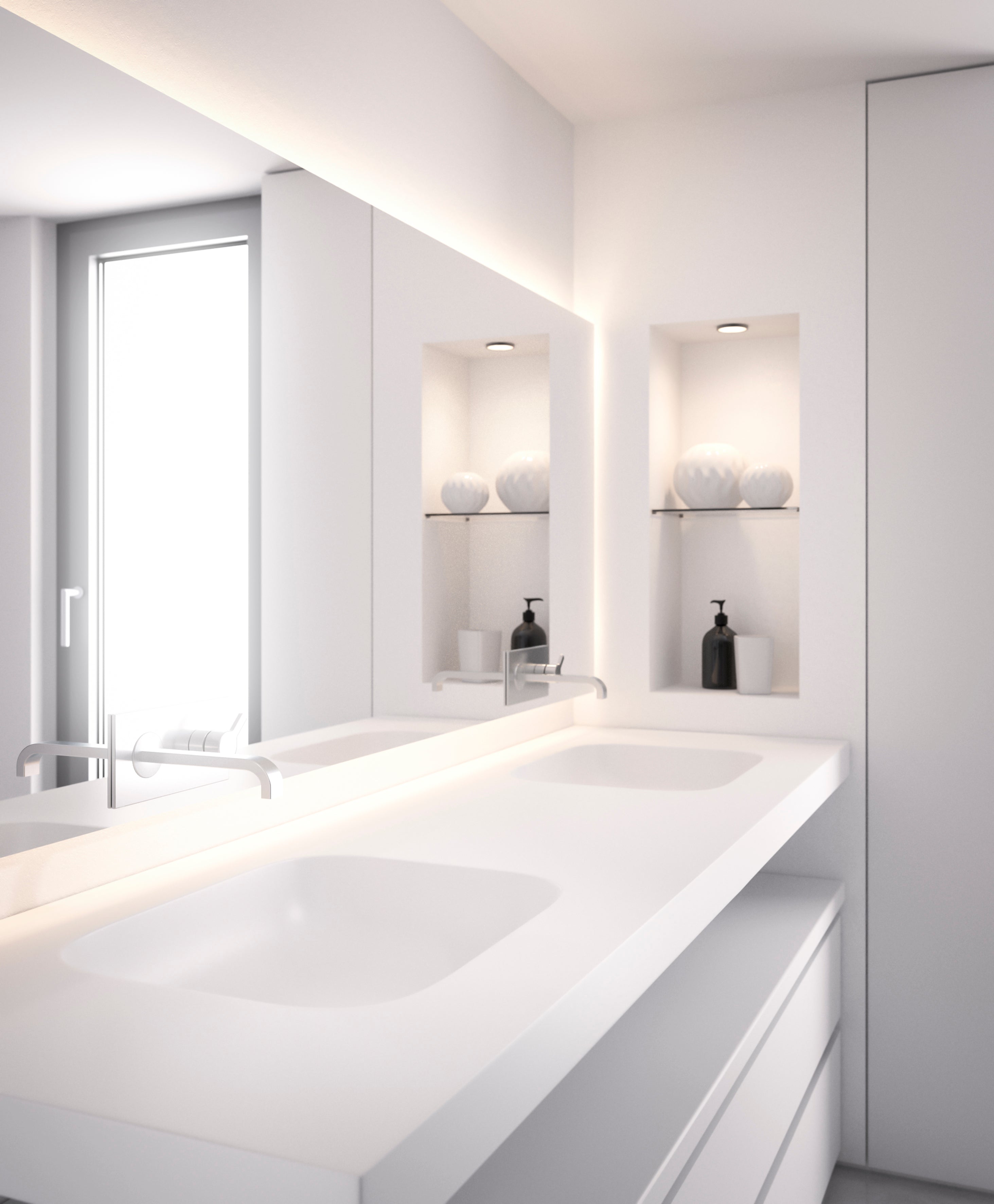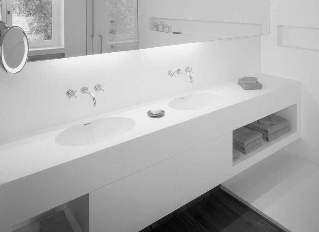 Með samskeytalausum Corian® borðplötum á baðherberginu næst fram glæsilegt útlit og frábært notagildi. Corian® er auðvelt í þrifum enda er hægt að láta Corian® borðplötu fljóta saman með Corian® vöskum án sýnilegra samskeyta. Allt í einu stykki. Þetta auðveldar öll þrif og gerir lífið bara einfaldara.