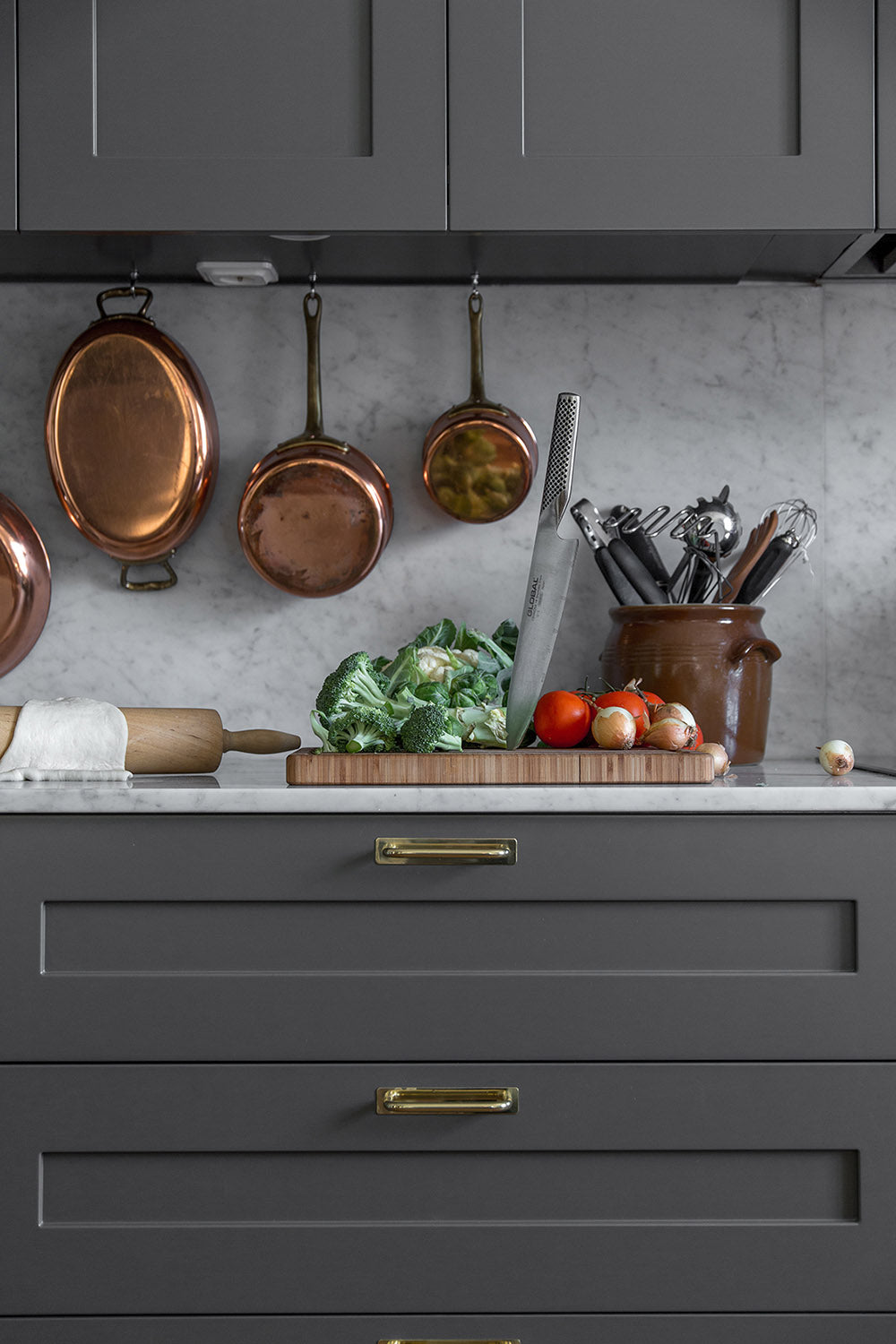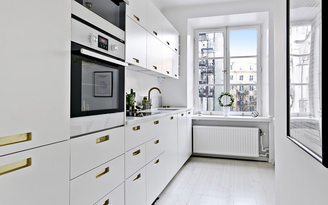 Hægt er að velja á milli mikils úrvals fallegra halda og hnappa á skápa og skúffur, fyrir þá sem ekki vilja innfræst grip. Höldurnar fást í fjölda stærða og mismunandi litum.